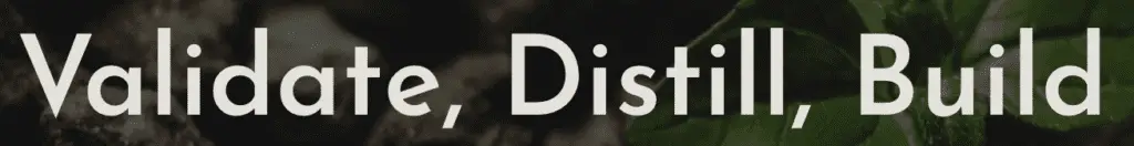 We operate through action verbs: Validate, Distill, Build.